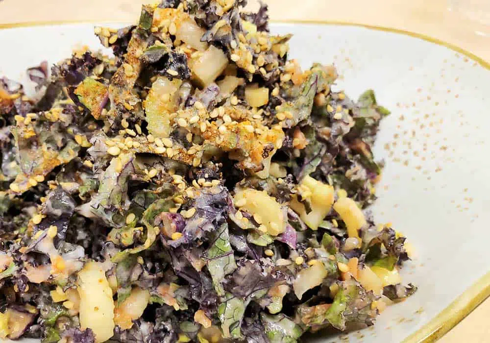 Kale tops the ANDI (aggregate nutrient density index) for the most nutrition per bite. This means that a healthy addition of kale to your weekly meal plan can add some very positive healthy benefits in just a few bites. Many people enjoy this salad with additional fresh proteins added like 1/2 an avocado, 1/2 cup cubed tofu or 1/4 cup pumpkin seeds. Try this to change up the dish as you enjoy it from week to week.