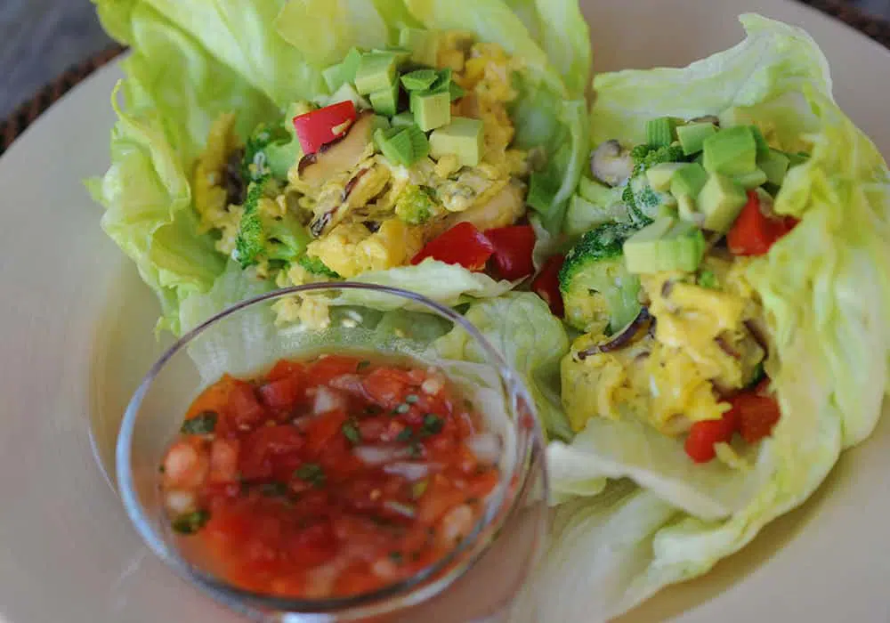 - Divide eggs evenly and place in wraps. Spread with salsa.
