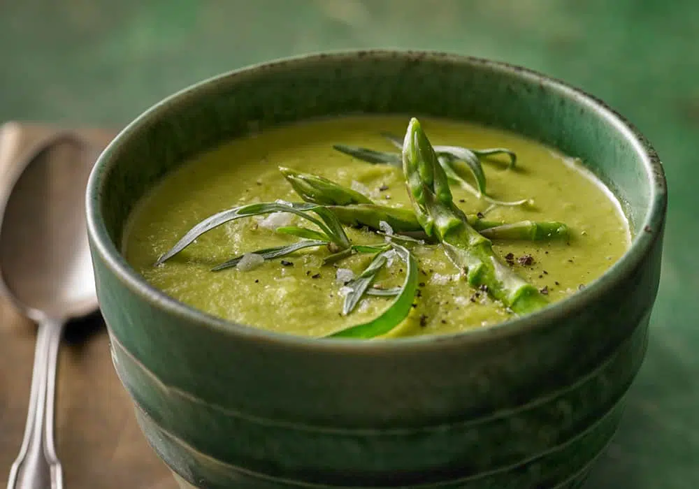 - Add asparagus tips to soup and simmer 5 to 10 minutes.