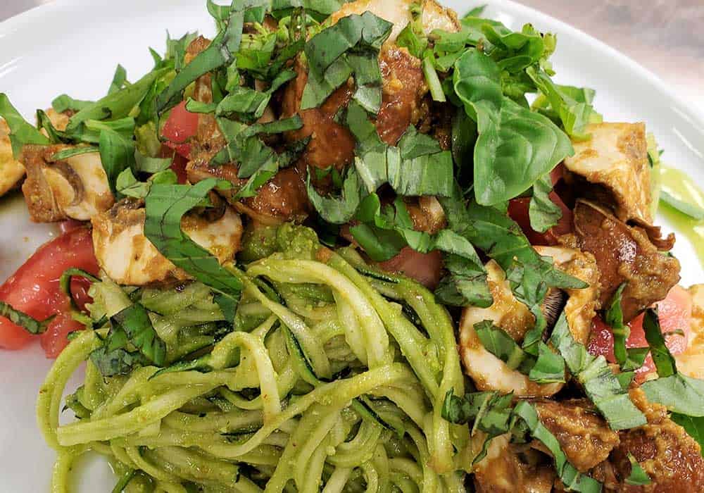 Squash is know as the "perfect" vegetable based on the ratio of hydrating water content to fiber and available nutrients so it is a perfect base for plant based dishes like this one! Be sure to include the skins of the squash so you can also benefit from the oxygenating chlorophyll they contain, especially zucchini! Even the basil garnish on this dish can boost your health by reducing inflammation in your body- flavor and function, gotta love mother nature!