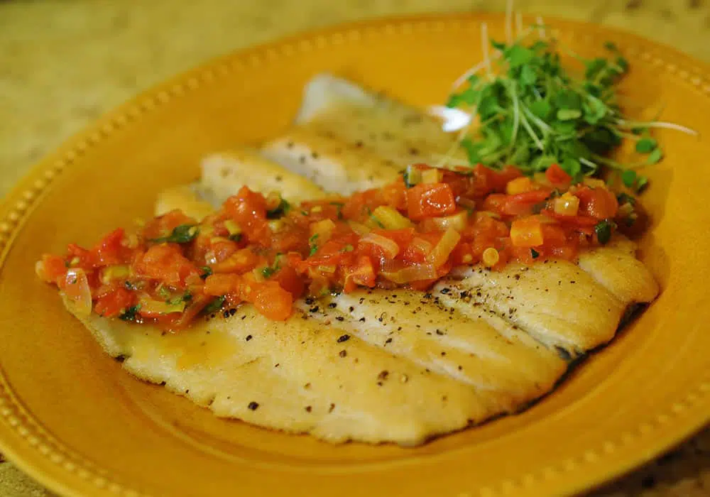 - Sprinkle basil evenly over all fillets and remove from heat. Place fillets on plates.