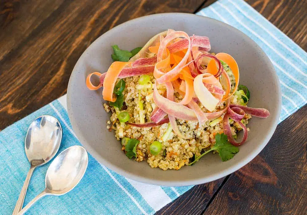 Quinoa can be cooked in a rice cooker or on the stove top in the same fashion as rice. When you cook quinoa we recommend to add some dried spices to the mix while cooking for varying flavors in your final bowl dish.